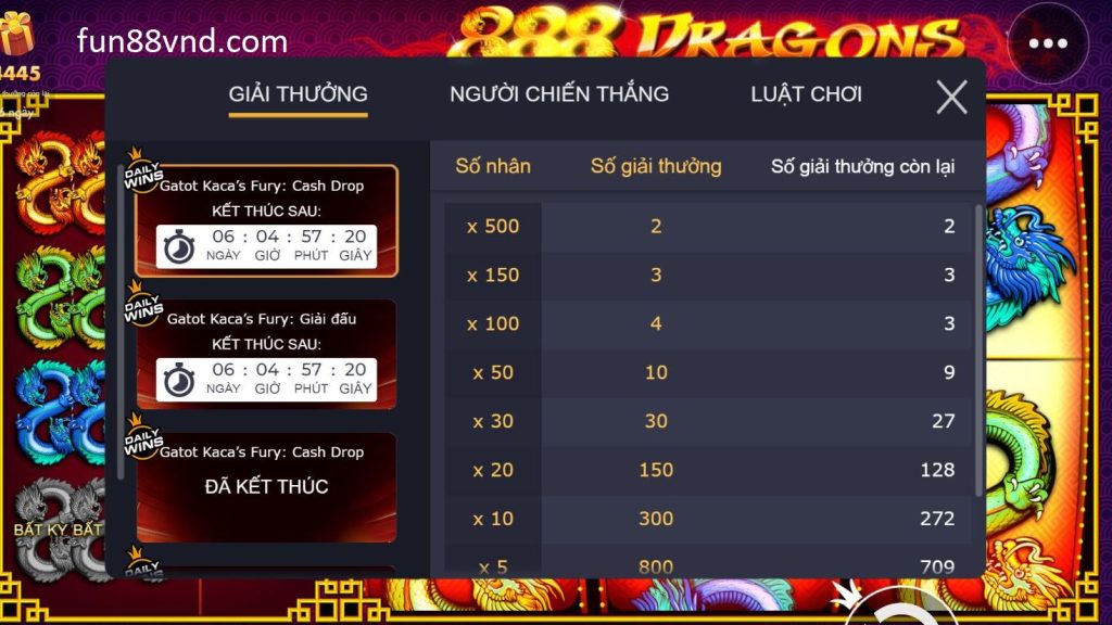 888 Dragon Fun88 – Trò chơi nổ hũ đổi thưởng trực tuyến lấy tiền thật được xuất bản bởi công ty phần mềm cờ bạc trực tuyến, Pragmatic Play. Trò chơi không phải là phiên bản Pragmatic Play duy nhất do Trung Quốc thiết kế, nhưng 888 Dragon Fun88 là trò chơi có số lượng người chơi đông nhất. Đặc biệt, nhà phát hành còn ra mắt phiên bản tiếng Việt để hỗ trợ người chơi Việt Nam tại Fun88.
