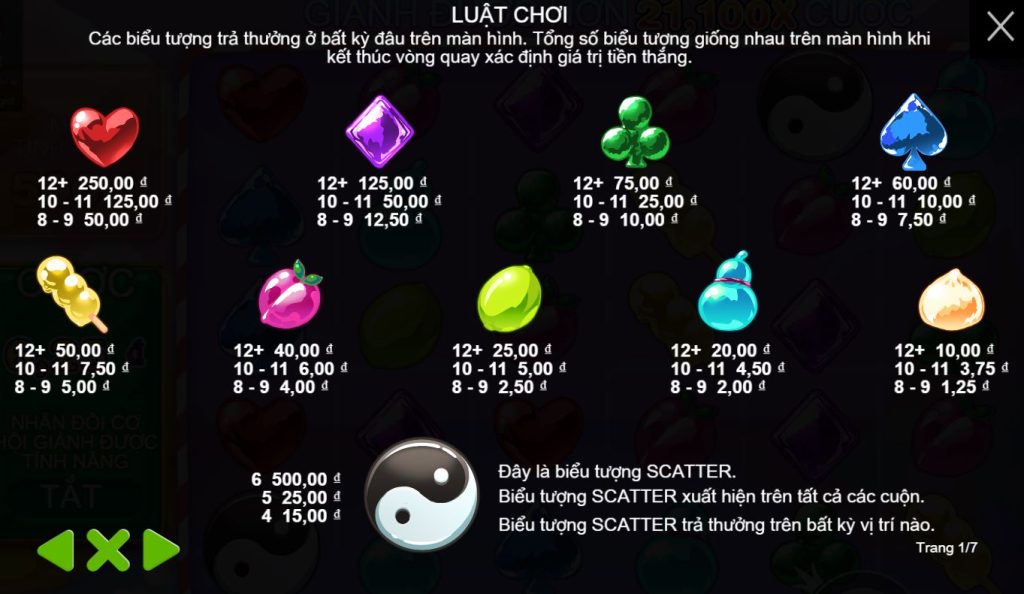 - Biểu tượng Scatter: biểu tượng này được thể hiện bằng hình ảnh của một hộp kẹo. Nếu bạn có ba hoặc nhiều hơn biểu tượng này trên các dòng thanh toán, bạn sẽ kích hoạt tính năng bonus của trò chơi.