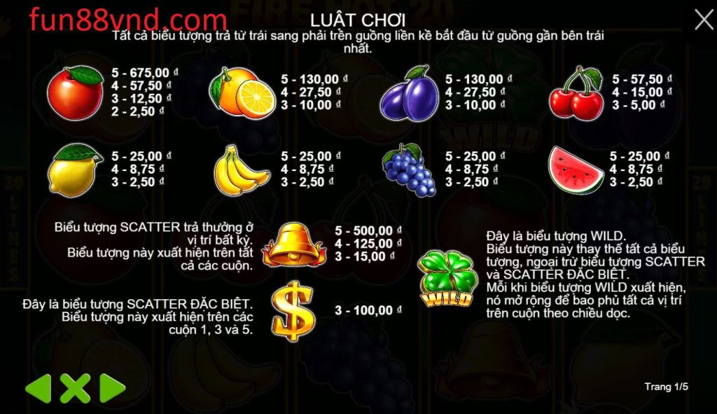 Giới thiệu về cách chơi cơ bản Ngọn Lửa Rực Cháy 20 tại Fun88