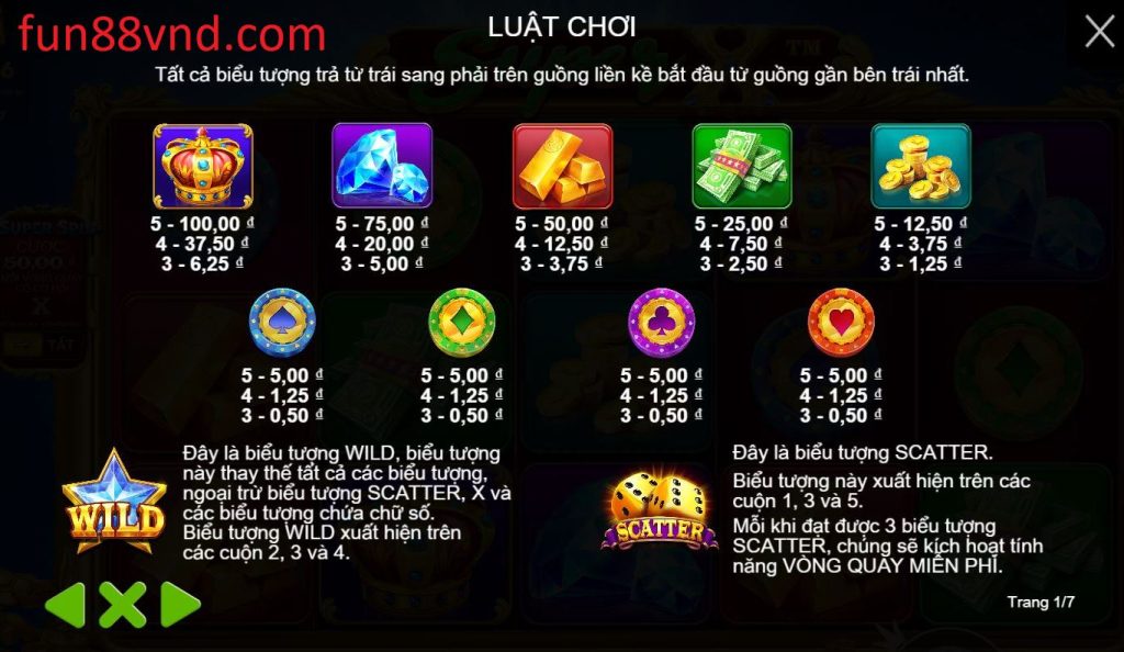 Chủ đề của Super X Fun88 là tất cả về sự sang trọng. Các vật phẩm có giá trị khác được hiển thị rõ ràng trong giao diện trò chơi. Mặc dù vậy, thiết kế của loại trò chơi slot game này khá đơn giản. Nó giúp người chơi dễ dàng làm quen và quay slot nhanh nhất khi bắt gặp.