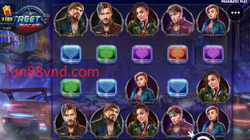 Biểu tượng Vòng quay Miễn phí trong Tay Đua Đường Phố tại Fun88 xuất hiện trên guồng 1, 3 và 5. Nếu bạn nhận được 3 vòng quay miễn phí trở lên, bạn sẽ kích hoạt tính năng này và chọn 1 trong 5 tùy chọn đầu tiên khi chuỗi bắt đầu. Mỗi tùy chọn có liên quan được liên kết với một thanh điều khiển khác nhau.