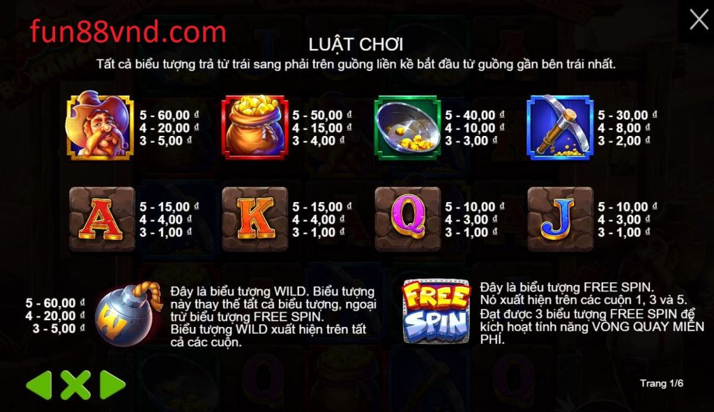 Vòng quay miễn phí: Khi người chơi quay 3 biểu tượng vòng quay miễn phí, 6 vòng quay miễn phí sẽ được kích hoạt.